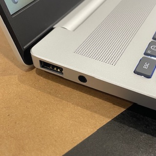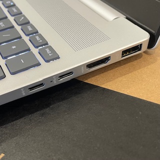 Prenosnik ima na levi strani en klasičen USB-A priklop ter priključek za slušalke (ali zvočnike). Na desni strani pa najdemo 2x USB-C priklopa (prek katerih se prenosnik tudi polni), en klasičen USB-A ter HDMI izhod za priklop dodatnega zaslona.
